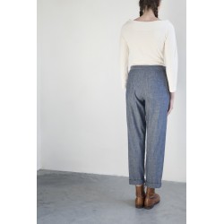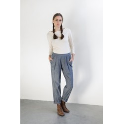 Pleated pants with pockets and curved waistband. Made in supple jeans poplin