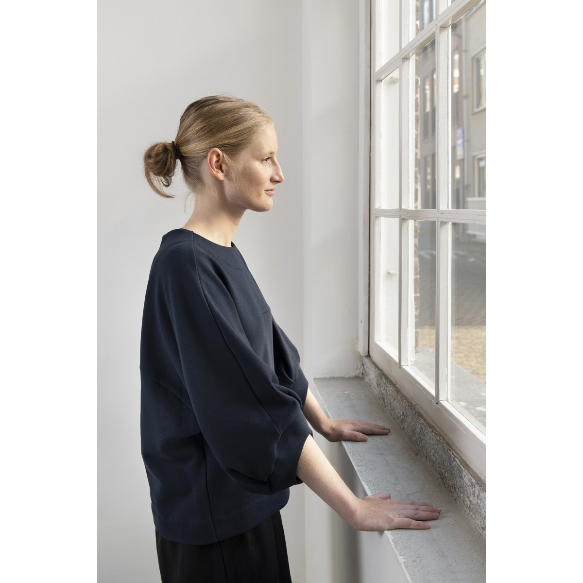 Comfortabele sweater met wijde 3/4 mouw, geplooid en ronde manchet. Gemaakt van biologische katoen GOTS gecertificeerd